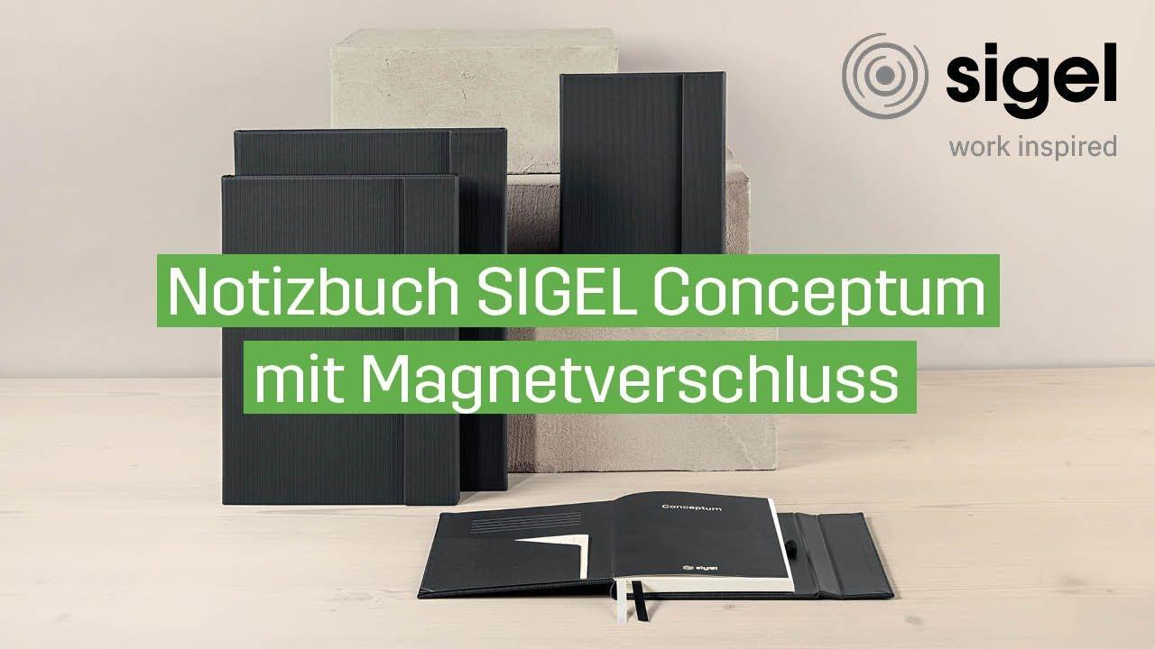 Das Video zeigt das SIGEL Conceptum Notizbuch mit Magnetverschluss. Zu Beginn wird das Notizbuch in einer ruhigen, gut ausgeleuchteten Umgebung präsentiert. Der Einband ist schwarz, hochwertig verarbeitet und hat eine elegante, strukturierte Oberfläche in einem modernen, professionellen Design. Der Magnetverschluss ist dezent in das Cover integriert und sorgt für ein sicheres und stilvolles Schließen des Notizbuchs. Die Kamera fährt langsam über das Cover und zeigt die feinen Details des Materials sowie die präzise Verarbeitung. Anschließend wird das Notizbuch geöffnet. Die Innenseiten sind kariert und bieten ein klares, übersichtliches Layout. Die Kamera zeigt das Inhaltsverzeichnis, ein farblich abgestimmtes Lesebändchen sowie die integrierte Stiftschlaufe. Im hinteren Einband befindet sich ein Einsteckfach für lose Notizen, Belege oder Visitenkarten. Die Präsentation legt den Fokus auf die Kombination aus Funktionalität und Design. Die Kameraführung ist ruhig und gleichmäßig, sodass alle Merkmale gut erkennbar sind. Zum Abschluss wird das Notizbuch aus verschiedenen Perspektiven gezeigt, um die hochwertige Verarbeitung, den sicheren Magnetverschluss, die durchdachte Innenaufteilung sowie die Alltagstauglichkeit für Beruf und Organisation zu verdeutlichen. Das Video legt den Fokus auf Design, Materialqualität und praktische Nutzung im Alltag.