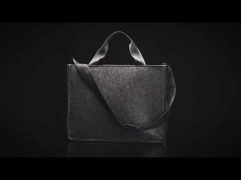 Mobile & practical: the lightweight desk-sharing bag for storing and transporting your laptop and other office equipment. Your personal work materials are always on hand, no matter where you happen to be working. Sturdy & stable: high-quality desk-sharing bag Premium M with the dimensions 36 x 28 x 15 cm (W x H x D) for laptops up to 15,4'', internal dimension: 34 x 13,5 cm. Made of recycled polyethylene (RPET) in dark grey with grey decorative stitching and matt silver metal components. Option of individual labelling. Stands very securely even when empty due to the wide base (weight-bearing capacity of up to 15 kg).