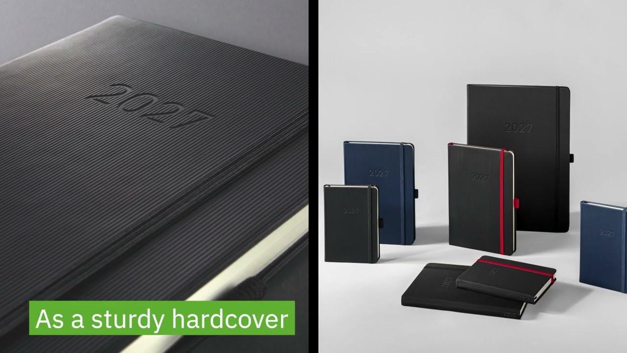 The cover has a rippled surface that is pleasant to the touch and makes the planner an elegant companion. Its practical information section and many useful features are bound to impress. For example, you will always have a pen on hand in the elastic pen loop, and the perforated note pages are ideal for jotting down and passing on notes. Organise your appointments and notes with the stylish stickers included. Top quality and superb design - you will simply love this bound planner.