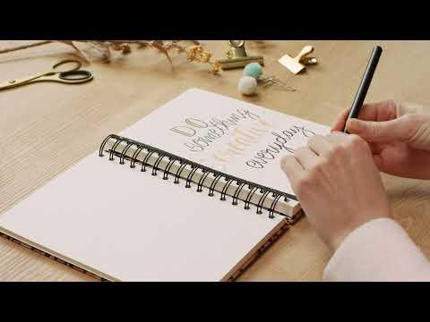 Laissez libre cours à votre créativité. Le papier blanc extra épais du carnet de notes à spirales convient parfaitement au lettering ou au bullet journaling et vous incite à l'agrémenter de dessins et à dessiner des jolies lettres. Que ce soit chez vous, sur votre canapé, lors de la pause-déjeuner ou dans le train : vous n'avez qu'à rabattre complètement la couverture rigide Hardcover parfaitement robuste de votre agenda avec sa reliure à spirale métallique haut de gamme et c'est parti.