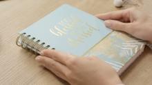 Wie zijn notitie- en dagboeken individueel wil vormgeven zal van het spiraalblok houden. Het moderne, trendy notitieboek zorgt voor veel plezier omdat de creatieve schrijfkunst op de voorgrond staat. Wordt u Handlettering-professional - met het mooie Jolie spiraal-notitieboek "Heavenly Leaves" in het formaat ca. A5 (16,80 x 21,50 x 2,80 cm) met 240 pagina's (punt-geruit, 120 g/m², alle bladen geperforeerd). De stevige hardcover band in lichtblauw/wit/goud garandeert stabiliteit bij het schrijven en tekenen.