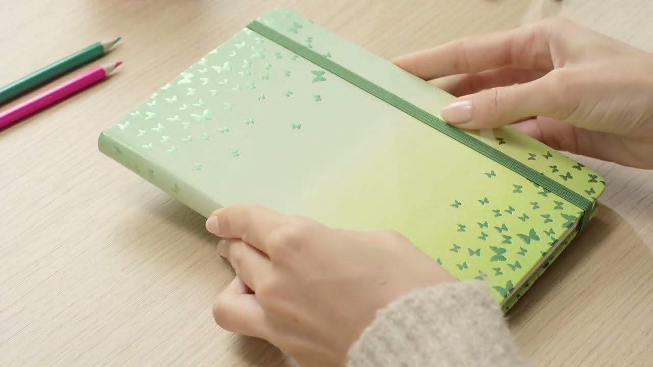 Het notitieboek is een kleurrijke en uitzonderlijke begeleider. Chique design wordt hier gecombineerd met praktische functies, waarmee u in het dagelijks leven zowel zakelijk als privé optimaal georganiseerd bent. Notities mooi verpakt en steeds bij de hand - met het aantrekkelijke Jolie notitieboek "Butterfly Confetti Lime", gelinieerd in het formaat ca. A5 (13,50 x 20,30 x 1,60 cm) met 174 pagina's (daarvan 16 bladen bladen geperforeerd). De stevige hardcover band in groen/geel garandeert stabiliteit bij het schrijven.