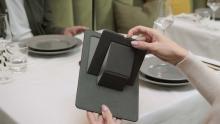 - Een verborgen, magnetische clip biedt plaats aan maximaal 20 vellen